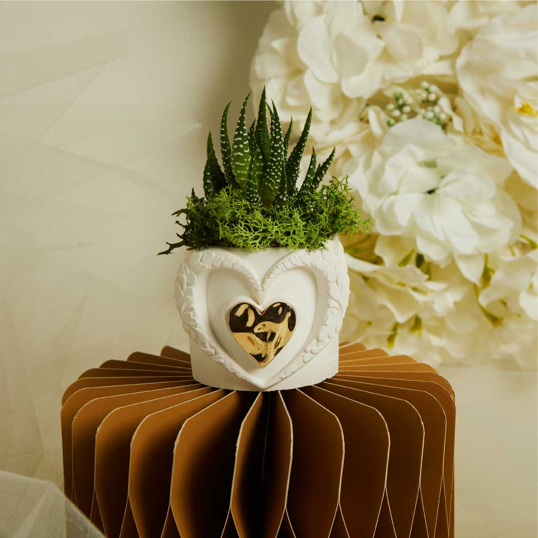 26286/Piantina Vasetto Cuore Con Applicazione Oro E Piantina Con Muschio Il prezzo originale era: €13,90.Il prezzo attuale è: €12,90.