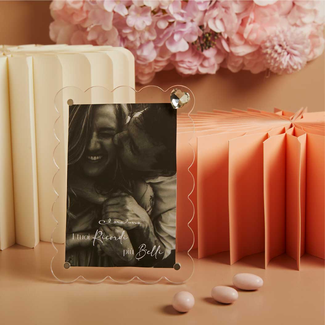 Scegliendo le bomboniere da matrimonio con un prezzo ivato superiore a €. 10,00 e con l’acquisto minimo di 50 bomboniere, Claraluna omaggia le partecipazioni stampate in misura del 10% maggiore all’ordine di bomboniere relativo (se acquistate 100 bomboniere saranno stampate 110 partecipazioni). Le partecipazioni includono: annuncio matrimonio, invito a ristorante, la busta ed il bigliettino per le bomboniere. Potrai scegliere la tua partecipazione tra i diversi modelli indicando il codice che vedi nell’immagini. Per ricevere le partecipazioni richiedi il modulo editabile in pdf, tramite whatsApp (3471065522) o e-mail (info@eventsbomboniere.it). Le partecipazioni stampate verranno inviate 30 giorni dopo il ricevimento dell’ordine.info@eventsbomboniere.it