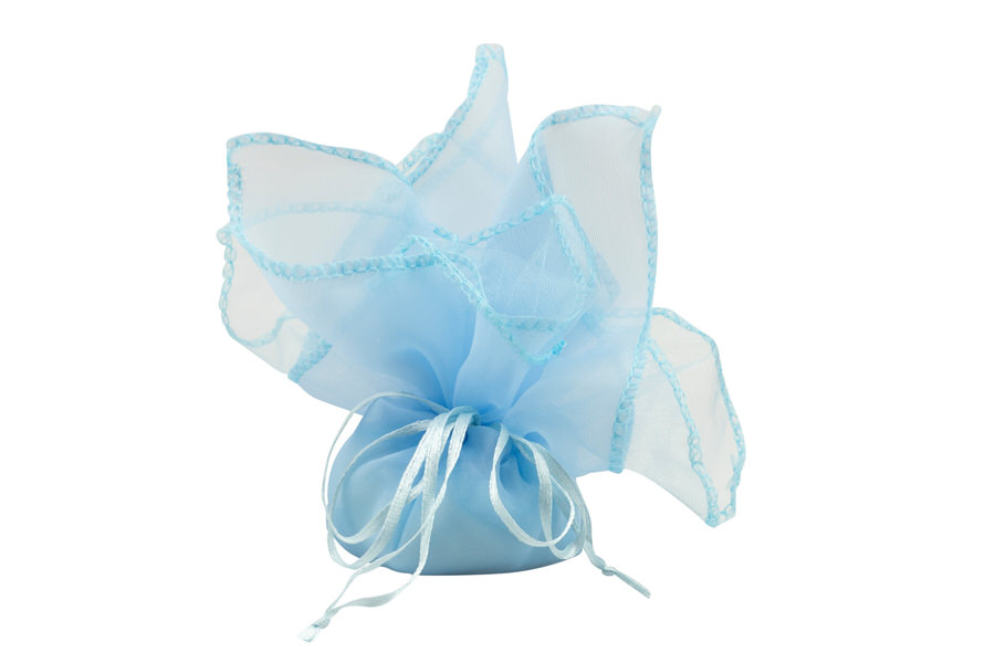 La confezione prevede cinque confetti Maxtris in bustina per alimenti, bigliettino e nastro doppio raso.