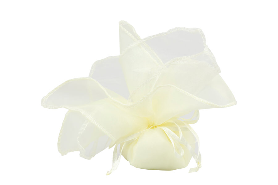 La confezione prevede cinque confetti Maxtris in bustina per alimenti, bigliettino e nastro doppio raso.