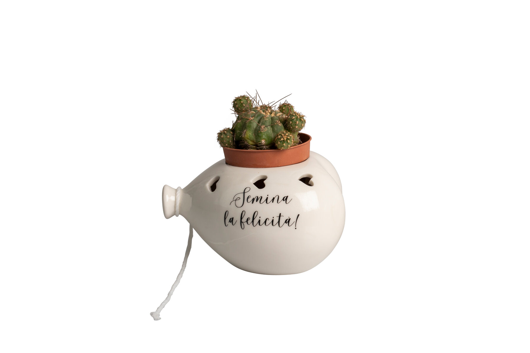 PRCM25068 Palloncino Cuore Porcellana Porta Pianta Bianco con Frasi e Laccetto, Box Pvc e Fazzoletto Bianco