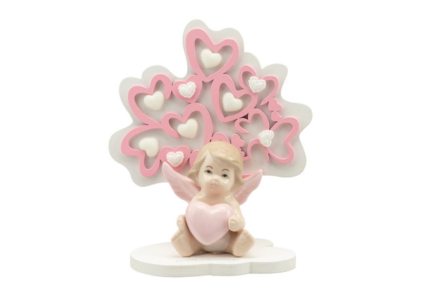 PRNB24191 Albero Della Vita Cuori Rosa Medio C/Angelo Porcellana Rosa C/Box E Fazz.