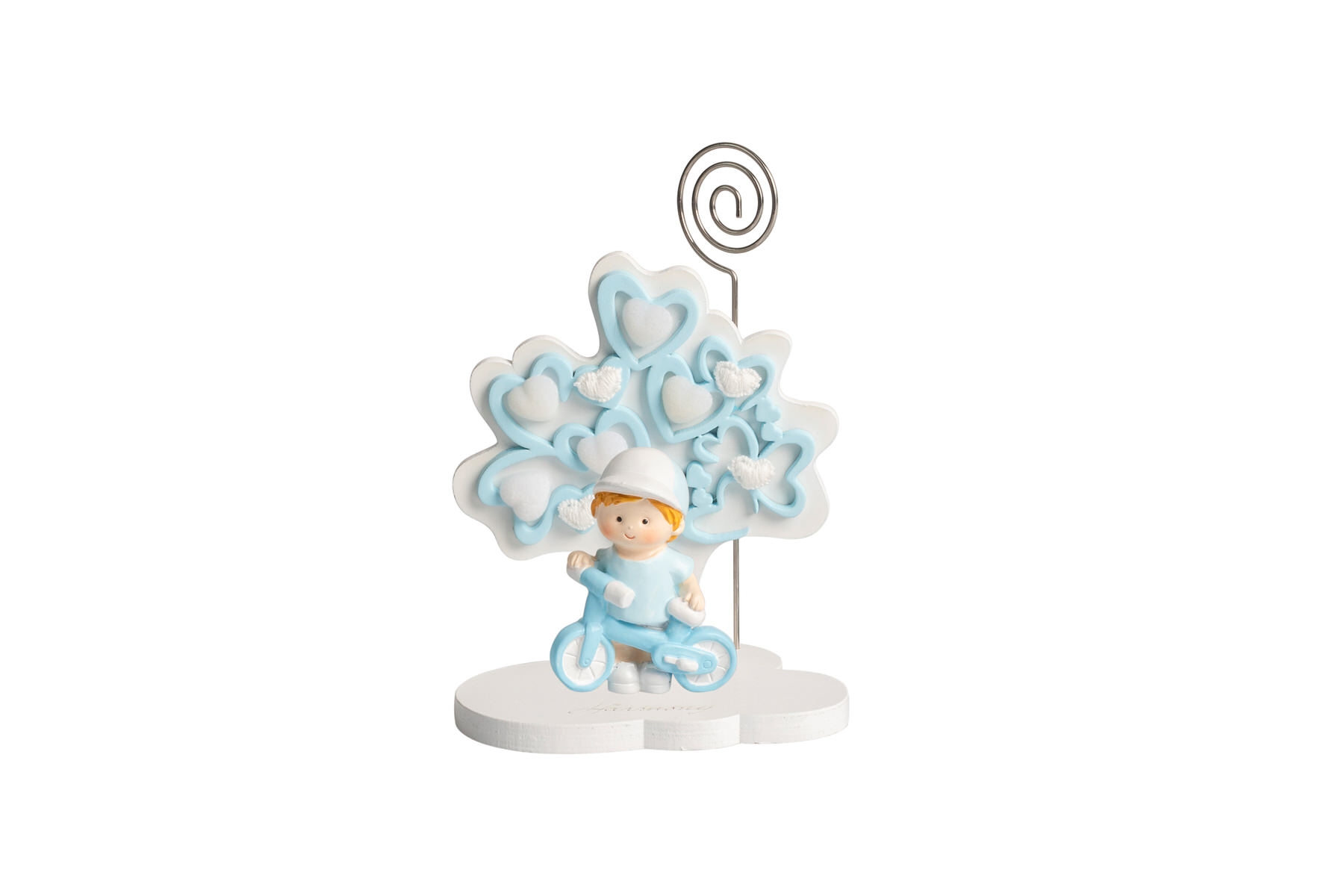 RSNB25077 Albero Della Vita Cuori Celeste Piccolo Con Bimbo 3d Resina Su Monopattino 3 Ass. Con Fazzoletto Celeste