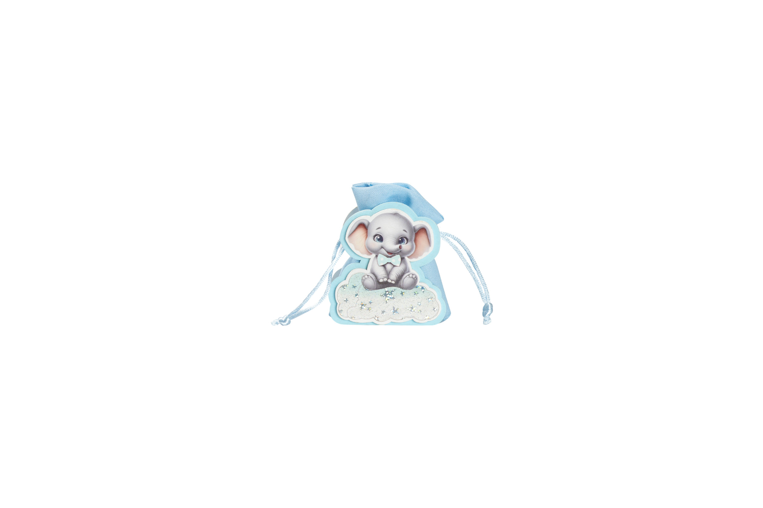 S3185L Scatolina Legno Porta Confetti Elefante Celeste con Sacchetto Fascia di prezzo: da €2,50 a €3,50