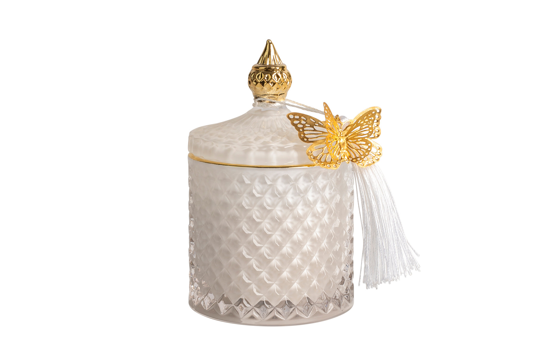 SNVT25025 Candela Vetro Profumata (Jasmine) Cilindro Bianco. Con Box E Fazzoletto Fascia di prezzo: da €11,90 a €12,90