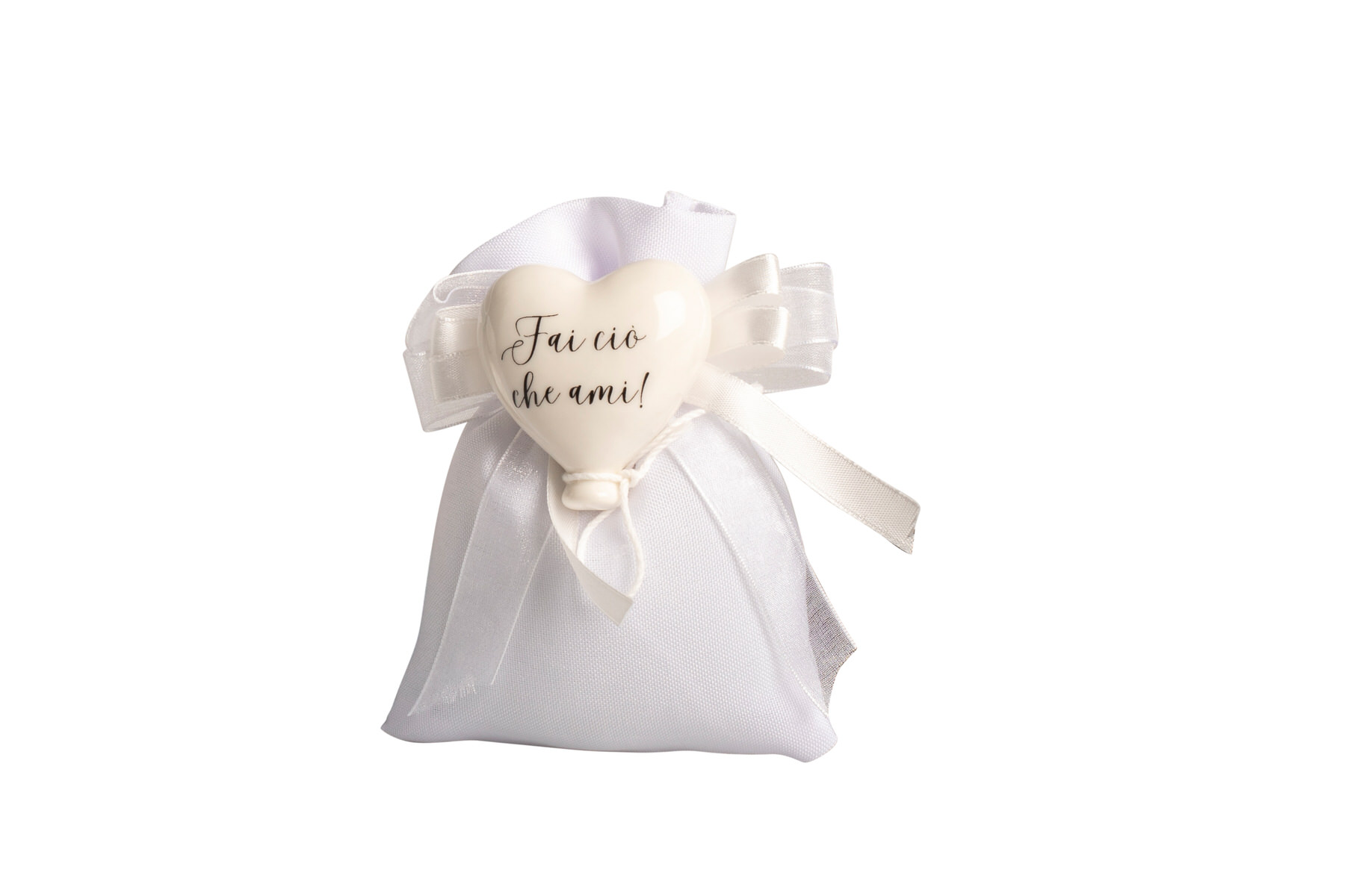 STCM25070 Magnete Palloncino Cuore Porcellana Bianco Con 2 Frasi E Laccetto – Con Sacchetto Bianco