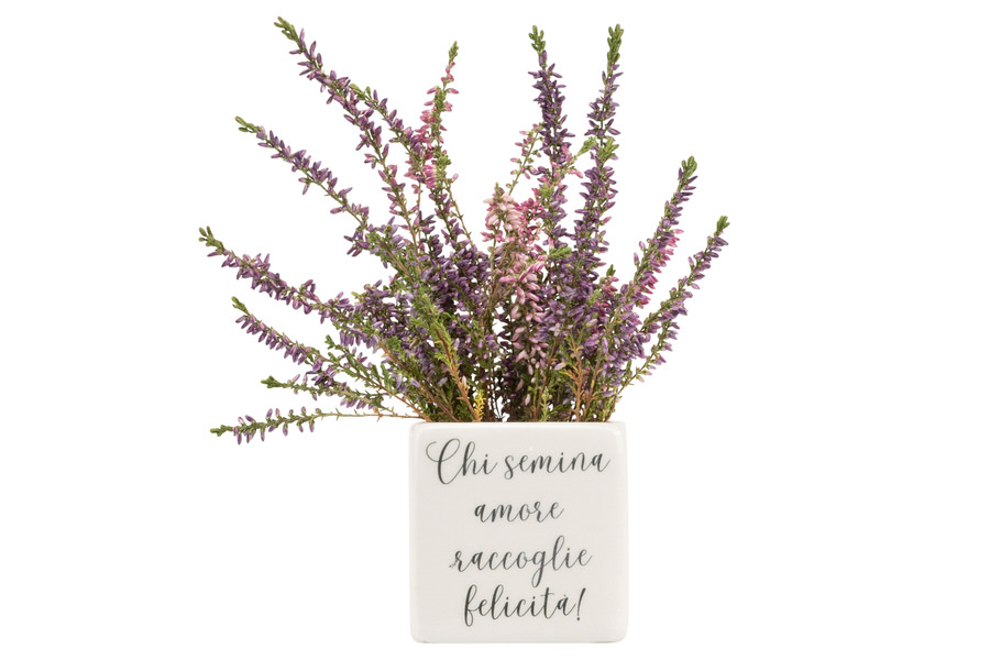 PRMT25255 Porta Piantina Porcellana Bianca Bombate Con 6 Frasi Ass.