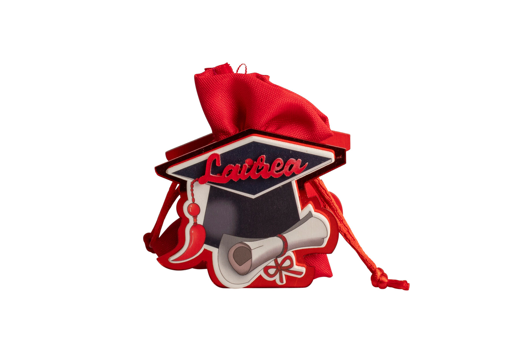 S3217A Sacchetto Laurea con Nastro Laurea e Pendente Coccinella e Scritta Laurea Legno Fascia di prezzo: da €2,00 a €3,40