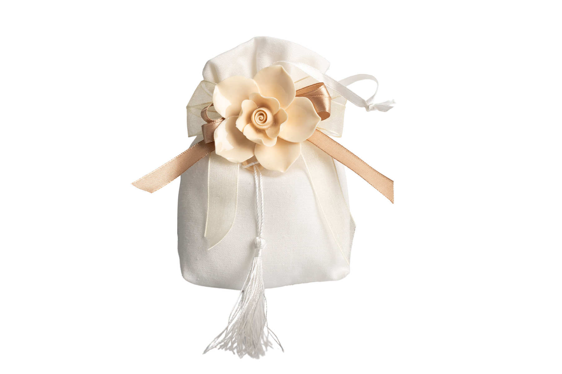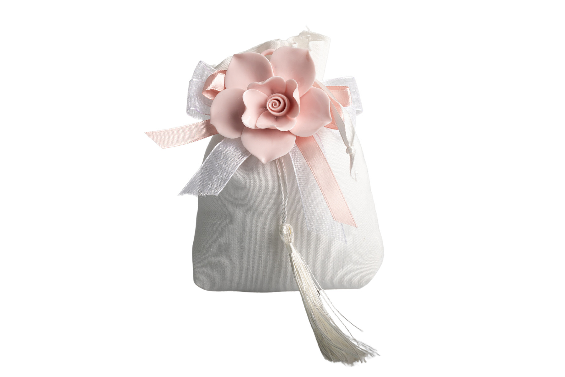 STMT25257 Sacchettone Bianco Con Fiore Porc. Cream Con Fiocco E Magnete Fascia di prezzo: da €3,60 a €5,00