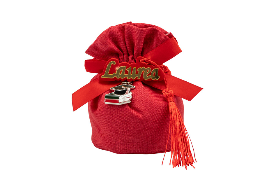 STLR24199 Sacchettone Cotone Rosso Con Accessorio Laurea e Charm Laurea Fascia di prezzo: da €3,10 a €4,50