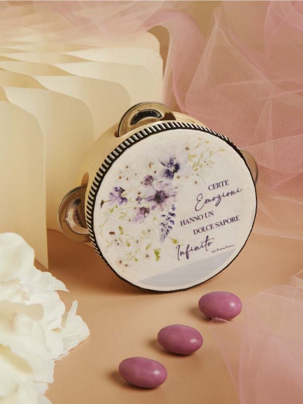 SI CONFEZIONAMENTO CON 5 CONFETTI MAXTRIS MANDORLA, BIGLIETTINO, NASTRO DOPPIO RASO.