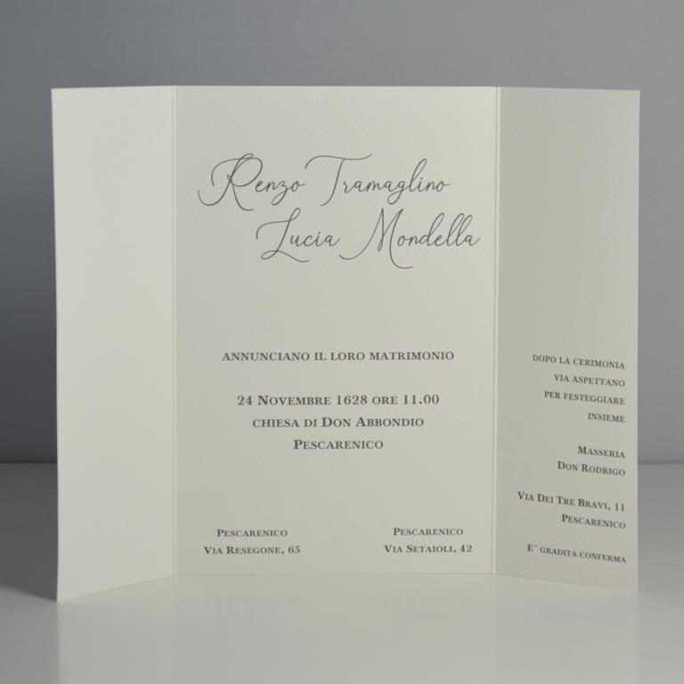 Una volta effettuato l’ordine invieremo tramite e-mail il modulo editabile, che ci dovrà essere reinviato per procedere alla stampa, compilato con i dati richiesti e dove potrete indicare il colore ed il numero del carattere di stampa preferito. Montaggio delle partecipazioni non incluso, verrà inviata una già montata come esempio.