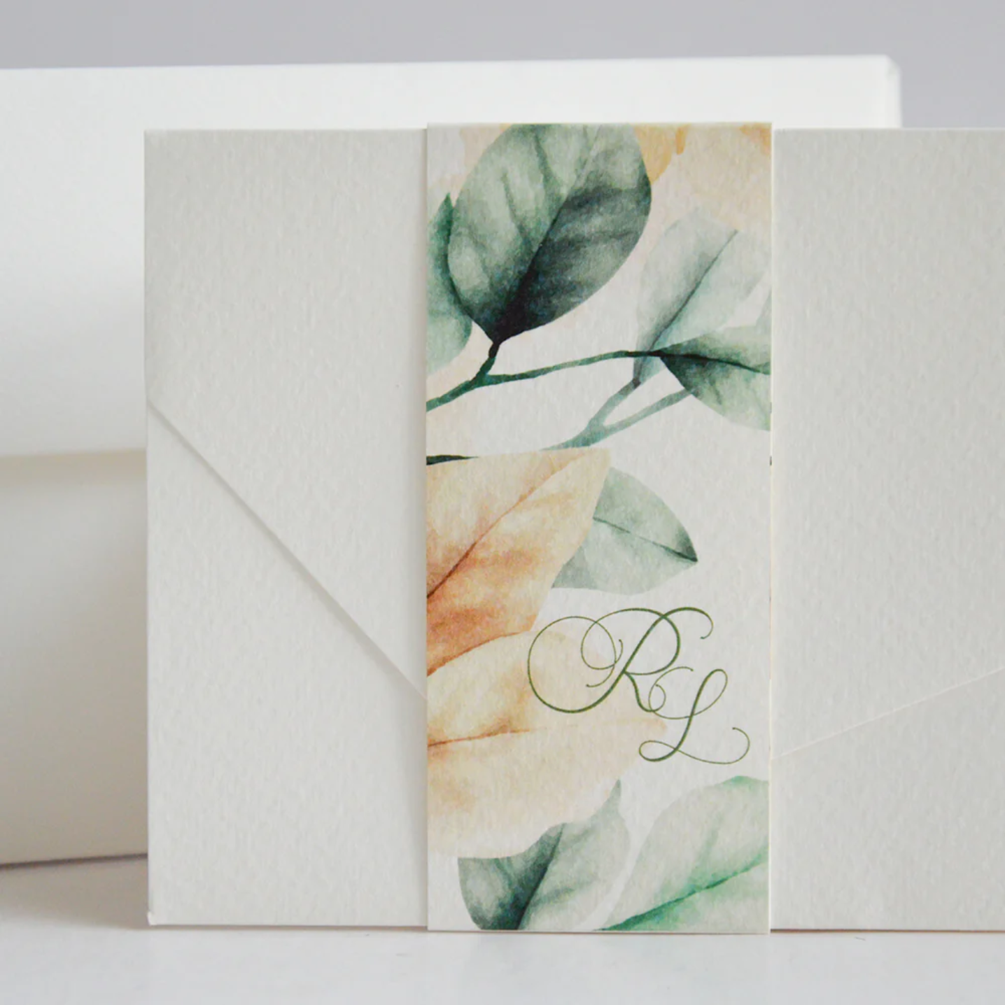 F1729 Partecipazione Matrimonio Fascia con Foglie