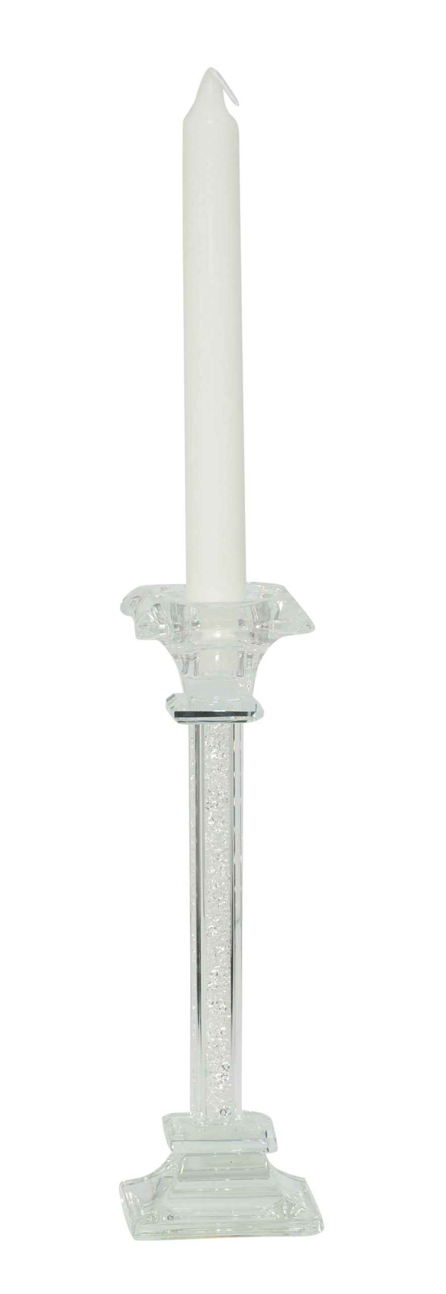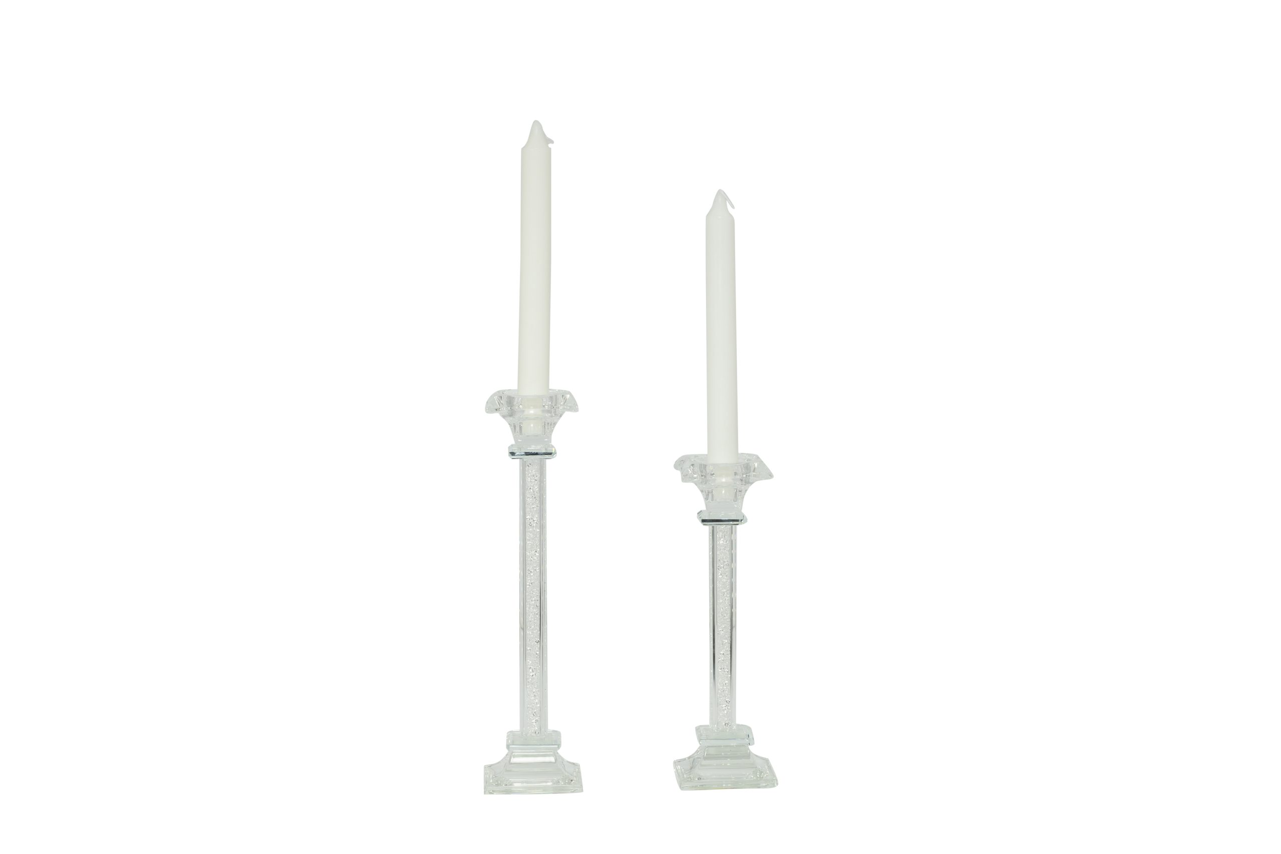 COPPIA PORTA CANDELA CRISTALLO CM.23 + 28 H CON GLITTER BIANCO