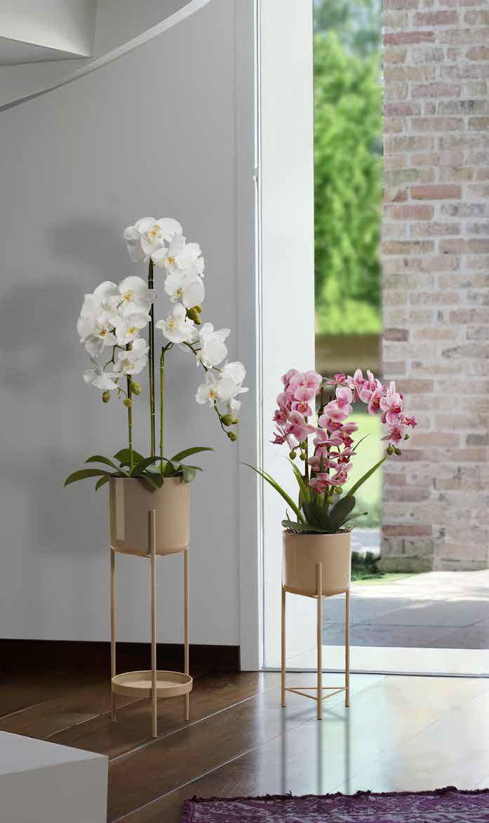 Bellissima pianta artficiale Orchidea Rosa 3 rami real touch con vaso ceramica distribuita da Fantin Argenti, di aspetto naturale e realistico misura cm 60 H con vaso 14x14h.