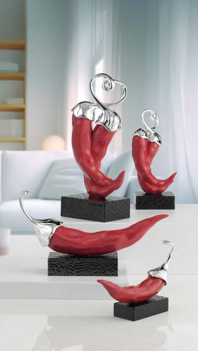 Peperoncino in polvere di marmo e resina con testa laminata argento.