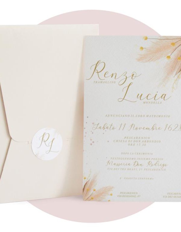 F1735 Partecipazione Matrimonio con pampas