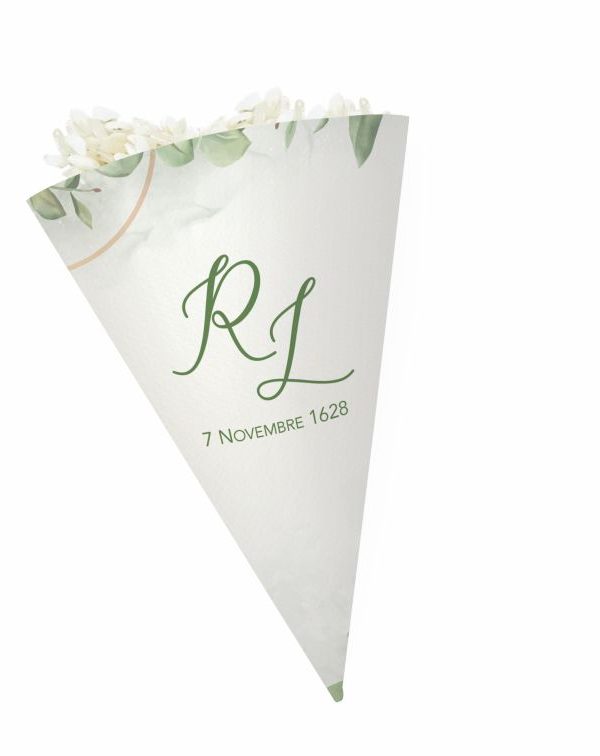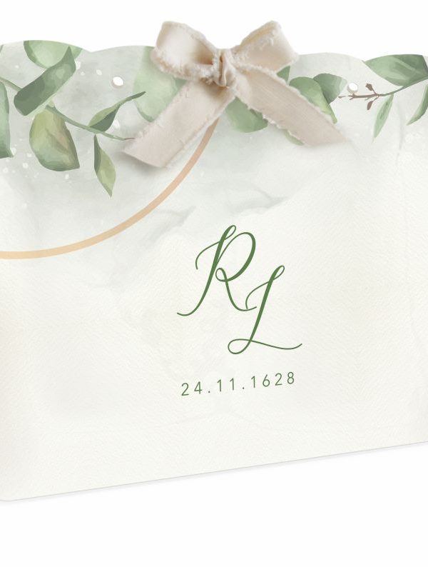 F1737 Partecipazione Matrimonio foglie verdi con bollino chiusura busta iniziali sposi